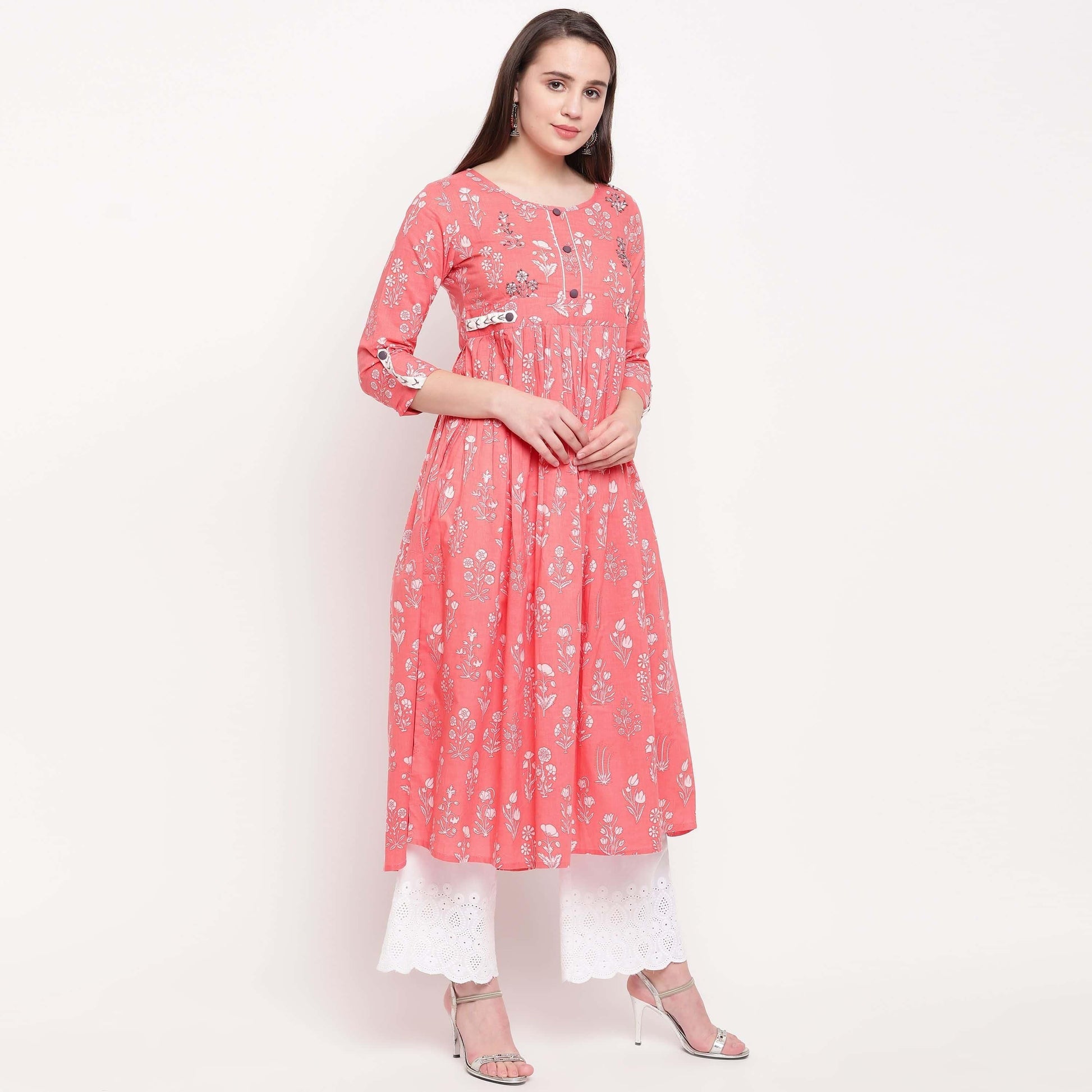 Vbuyz Women's Printed Anarkali Cotton Light Pink Kurta
